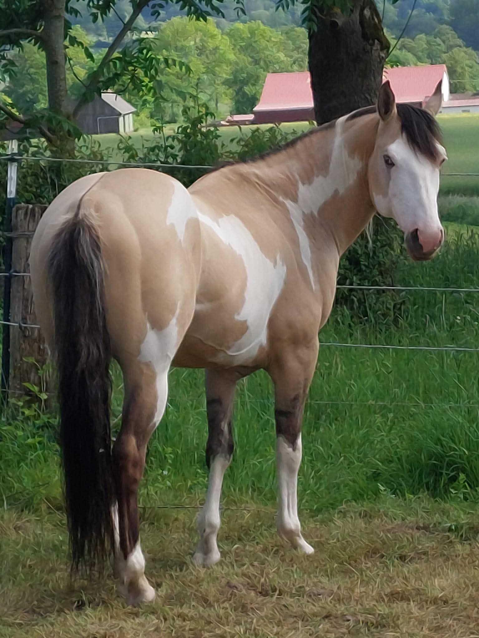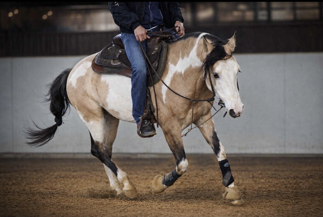 Der 2017 geborene Dunskin-Overo Hengst Streetwalker SBH ist ein echter Hingucker - ein Zuchthengst mit aussergewöhnlicher Genetik und einem unfassbar coolen, ruhigen und entspannten Charakter. Er ist reinerbig Black - also E/E und kann daher keine Füchse produzieren. Mit seinem Creme Gen, seinem Dun Gen, seinem W20-Gen, sowie seiner außergewöhnlichen Overo-Scheckung kann er schöne bunte Fohlen mit Sonderfarbe bringen. Diese Kombination ist sehr selten zu finden! Er war im Reining Training und zeigte auch am Rind echtes Cow-Sense. Ebenso geht er entspannt ins Gelände oder wird gelegentlich im Kinderreitunterricht eingesetzt. Auch seine bisherigen Nachkommen zeigen sich unfassbar gelehrig, entspannt und talentiert und sind in jeder Sparte zu finden. Ob für ambitionierte Reiter im Reining oder Cow-Work, ob für Familien oder als entspannter Freizeitpartner für Gelände oder Trail, seine Fohlen überzeugen in ganzer Linie und sind nicht nur optische Hingucker, sondern auch charakterlich vollkommmen kopfklar, gelassen und motiviert bei der Arbeit. Durch sein Pedigree mit keinem geringeren als dem World Champion Reiner Luckys TE N TE als sein Großvater, sowie Cow Horse King, den souveränen Leo oder das breite und gelassene Ranch Horse Hancock im Papier, ist Streetwalker SBH Allround gezogen und seine Nachkommen vielseitig einsetzbar. Streetwalker selbst bringt mit 1,46 Größe einen breiten und kompakten Körperbau mit, hat kräftige Beine und starke Hufe. Er ist beim APHA registriert und beim ZSSE gekört und so nicht nur für American Paint Horse Stuten und American Quarter Horses, sondern über den ZSSE auch für Fremdrassen als Quarter Pony, Europäisches Westernpferd, sowie Pinto zugelassen. Seine Körnoten können sich sehen lassen. So hat er im Typ eine 8,0, im Gebäude 7,5, Korrektheit 7,5, im Trab eine 8,0, im Galopp eine 7,5, im überragenden Schritt eine 8,5, im Gesamteindruck eine 8,0 und somit als Gesamtbewertung eine 7,9 erhalten. Er ist vollständig genetisch durchgetestet und 7 Panel N/N inkl IMM/MYHM und EJSCA. |